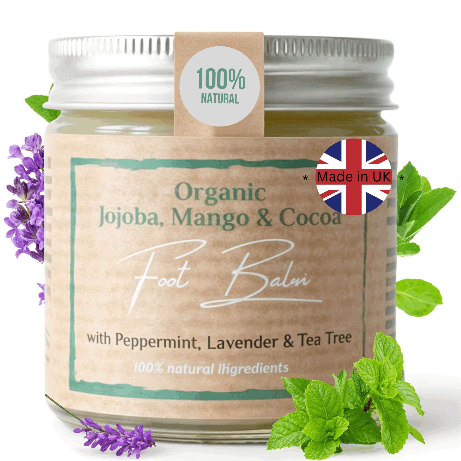 Intensive Foot Care, Naturally: Unlike synthetic foot creams filled with water and fillers, our 100% natural foot balm is handmade in small batches with organic jojoba, cocoa & mango butters. A concentrated formula that deeply nourishes cracked heels and transforms tired feet into smooth, spa-soft skin.
