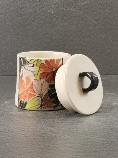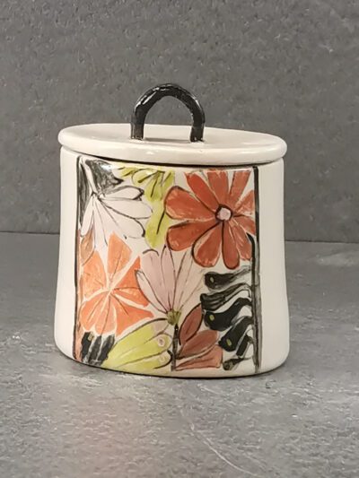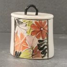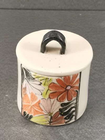 Stoneware lidded keepsake pot with hand-painted design by Kathleen Hepworth