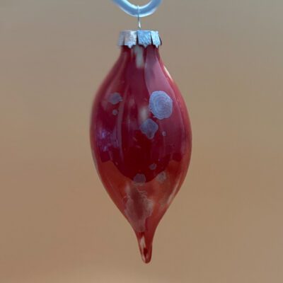 Elegant porcelain Christmas tree ornament glazed in grey crystalline on red