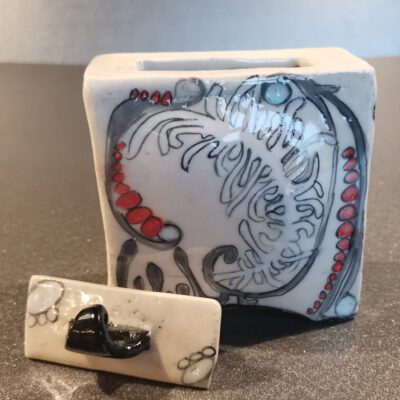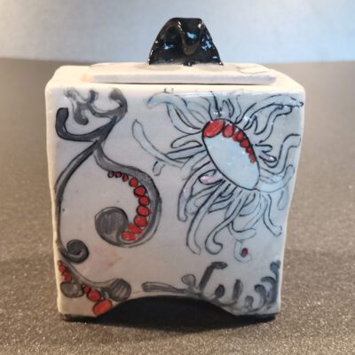 Stoneware glazed Keepsake Box with hand-painted design by Kathleen Hepworth