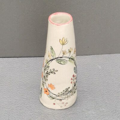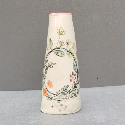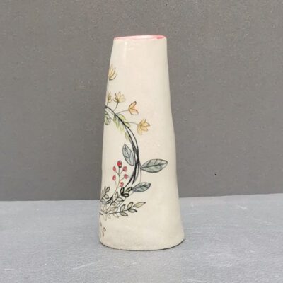 Stoneware vase with hand-painted design by Kathleen Hepworth
