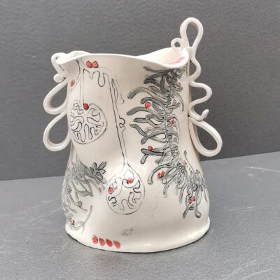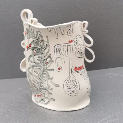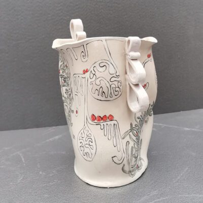 Stoneware glazed Vase with hand-painted design by Kathleen Hepworth