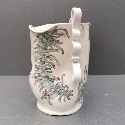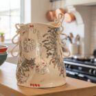 Twice fired and glazed at 1300C so should be dishwasher safe, but I’m sure it would prefer to be carefully handwashed if possible.