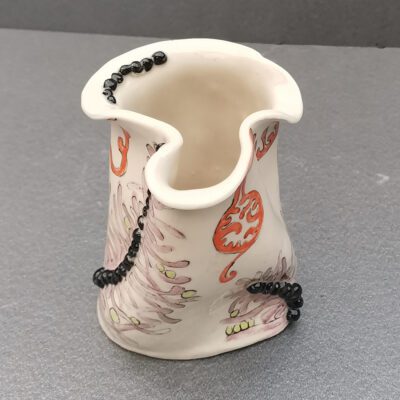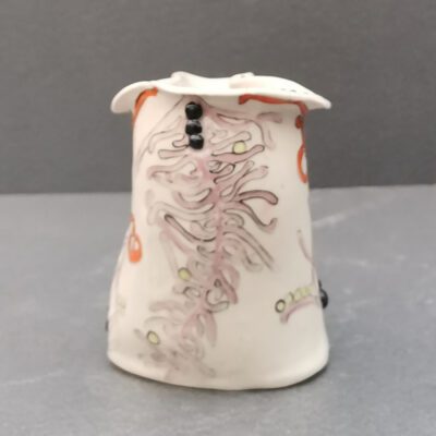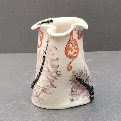 Stoneware vase with hand-painted design by Kathleen Hepworth