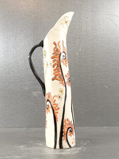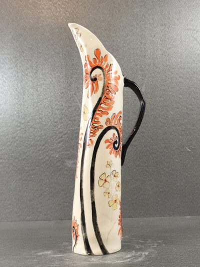 Stoneware jug with hand-painted design by Kathleen Hepworth