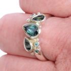 The ring is made from solid 9ct White Gold, with its naturally buttery tone perfectly complimenting these aqueous gems. The band has a rounded ‘court’ profile which gently tapers from 5mm wide at the top to 4mm at the back, making it very comfortable to wear, with the settings a maximum of 5mm from the top of the band. These smooth bezel settings are very durable and secure, meaning this ring does not need to be reserved just for special occasions!