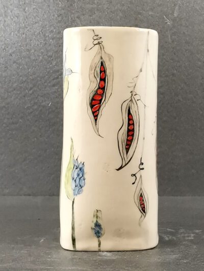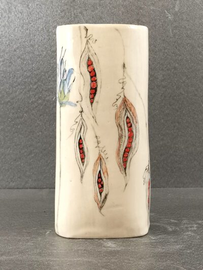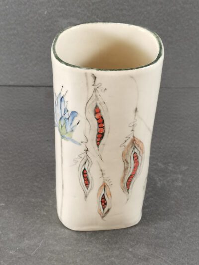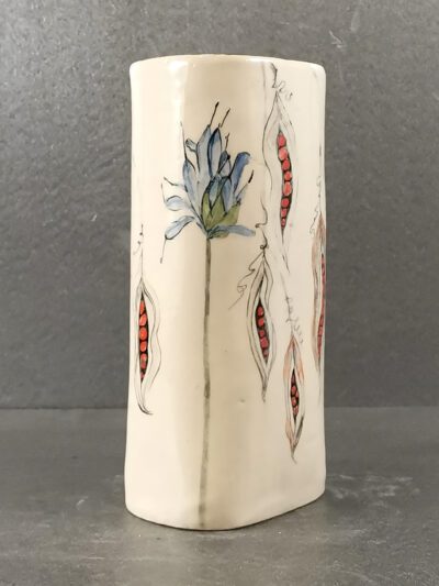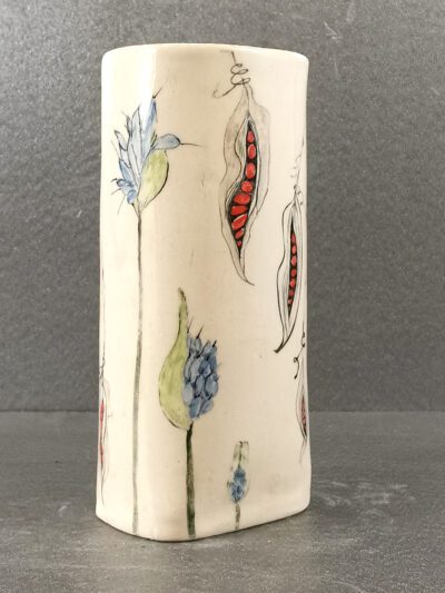 Stoneware vase with hand-painted design by Kathleen Hepworth