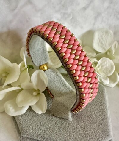 Be the first to review “Wide SuperDuo Bracelet – Coral & Gold”